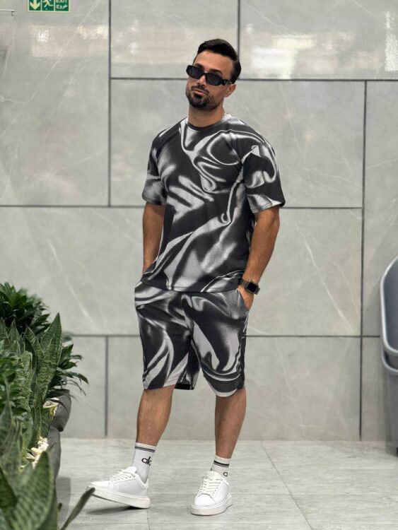 ست تیشرت و شلوارک LV کاستوم طوسی