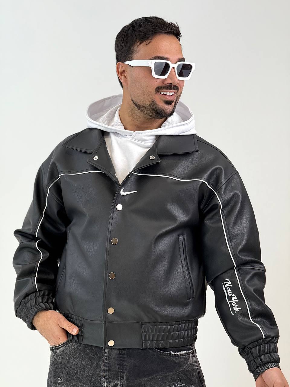 کت چرم اصلی نایک / کار نمایندگی نایک است یک کار ارزنده / از بهترین متریال های روز در این محمول استفاده شده / تمام طرح ها و نوشته ها گلدوزی است / یک تن خور جذاب و فوق العاده خوش کپ / سایز بندی لارج تا دو ایکس لارج/ چرم کار طبیعی است